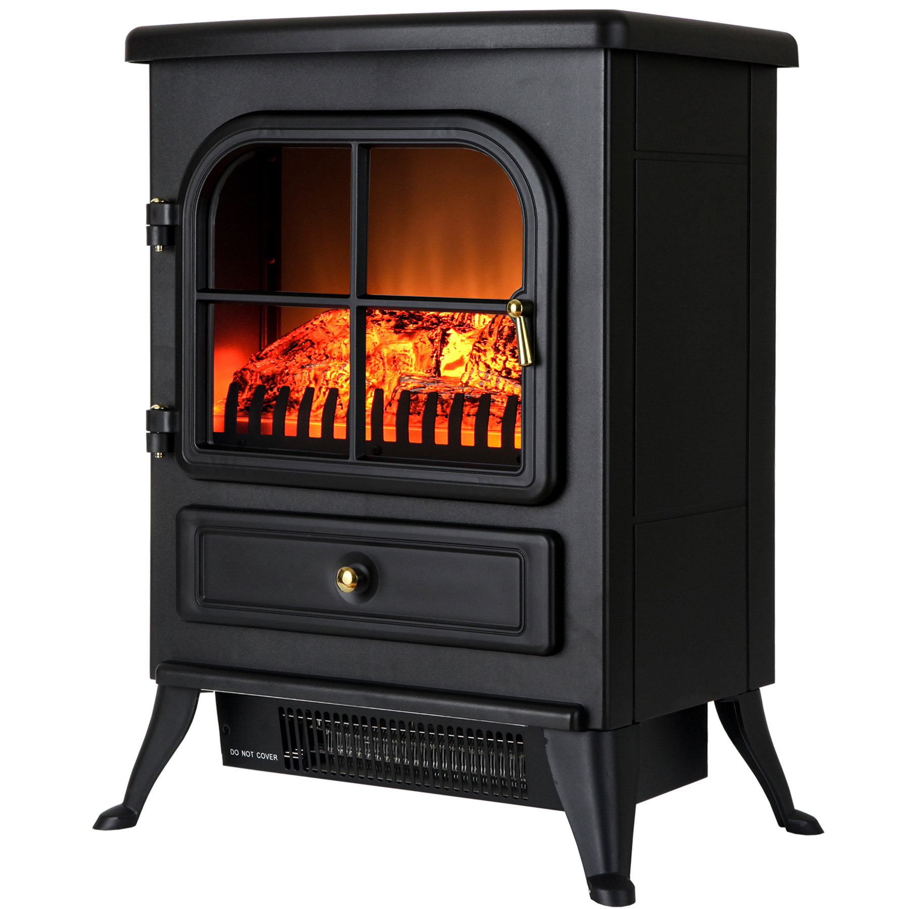 Homcom freestanding electric fireplace heater with realistic flames, 21 h, 1500w.